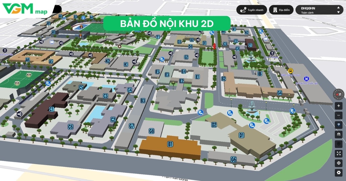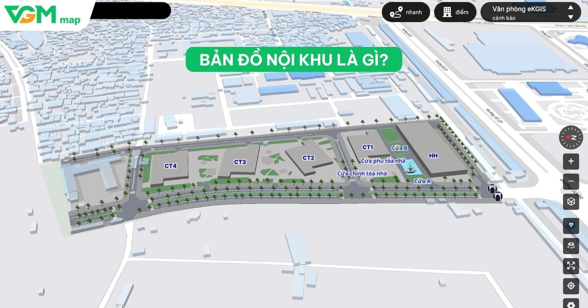 - Số hóa chi tiết không gian nội khu: Xây dựng bản đồ 2D/3D, hiển thị các tòa nhà, khu chức năng và tiện ích trên bản đồ trực quan.