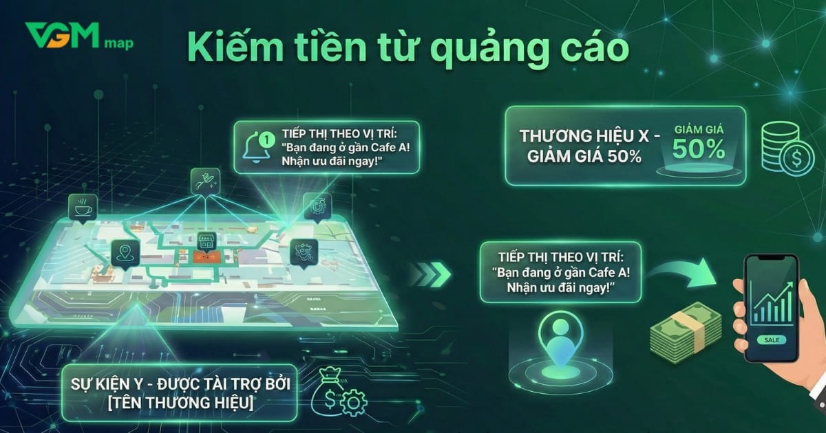 Với bản đồ tương tác, khả năng thương mại hóa rất đa dạng, bao gồm việc chèn quảng cáo và banner trực tiếp trên giao diện bản đồ.