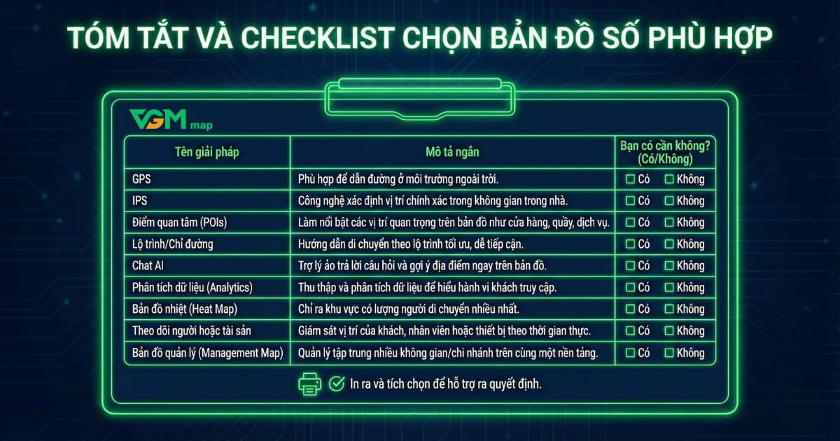 Tóm tắt và checklist chọn bản đồ số phù hợp