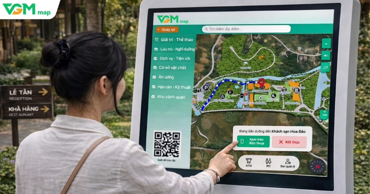 Phía sau trải nghiệm này là hệ thống dữ liệu bản đồ, máy chủ xử lý và giao diện hiển thị được tối ưu cho thao tác cảm ứng. Một số hệ thống hiện đại còn có thể đồng bộ với QR Map hoặc Web Map, cho phép người dùng tiếp tục xem bản đồ trên điện thoại sau khi rời Kiosk.