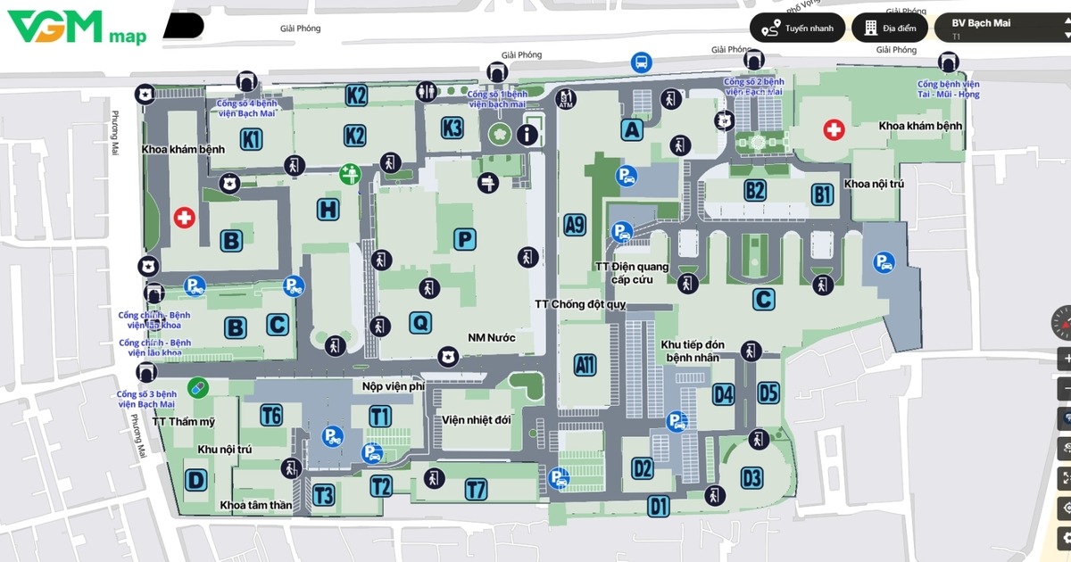 - Bản đồ trong nhà được xây dựng từ sơ đồ mặt bằng sẵn có của bệnh viện